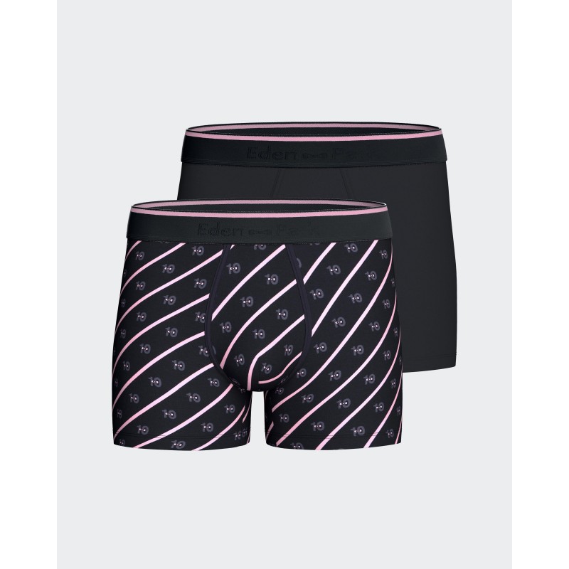 Lot de deux boxers (un uni et un imprimé) à taille élastiquée. Maille douce en coton et élasthanne. Fabriqué au Portugal.
