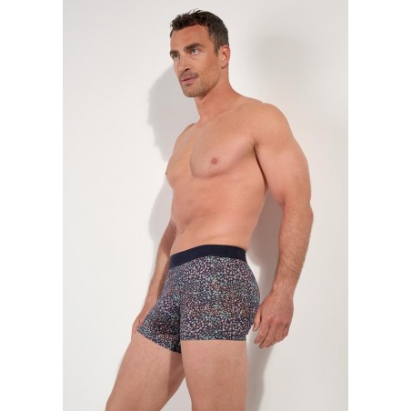 Ce boxer pour homme offre confort et élégance au quotidien. Sa composition en coton et modal doux, enrichi d’un peu d’élasthane, procure une sensation seconde peau et suit chacun de vos mouvements. L’élastique de soutien cousu dans la coque avant garantit un maintien optimal, tandis que le voile inséré dans l'ourlet de bas de jambe empêche le boxer de remonter. L’imprimé liberty aux couleurs pastel évoque subtilement l’époque victorienne et apporte une touche raffinée et délicate à votre collection de sous-vêtements.