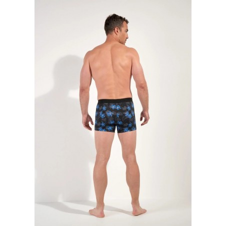 Ce boxer homme est confectionné en coton et en modal doux avec une touche d’élasthane qui ajoute de l'élasticité, il épouse parfaitement les formes du corps et suit vos mouvements. L’élastique de soutien intégré dans la coque avant assure un maintien discret et confortable, tandis que le voile de bas de jambe empêche le tissu de remonter. Son motif de fleurs tropicales contraste avec le fond sombre, apportant une touche moderne et dynamique à votre collection de sous-vêtements. Une pièce qui combine fonctionnalité et style pour le quotidien.