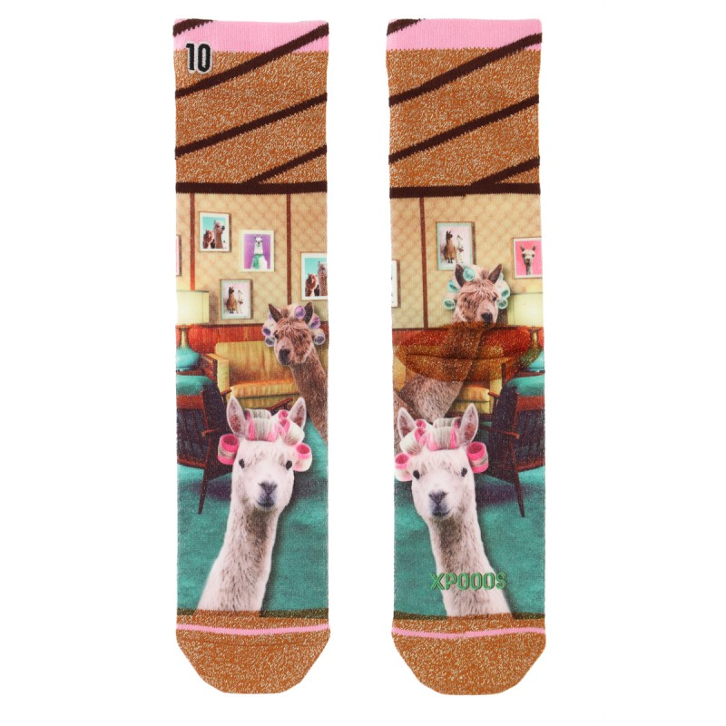 Il est temps pour un moment de self-carts à vos pieds. Les chaussettes de beauté des dames de Xpooos vous emmènent au salon, mais ensuite un plein d'alpagas à Haarkrulers. Pensez à un salon rétro confortable avec des bancs doux, des couleurs chaudes et une décoration murale pleine de portraits d'alpaga. Ces chaussettes sont non seulement confortables, mais aussi élégantes hilarantes.