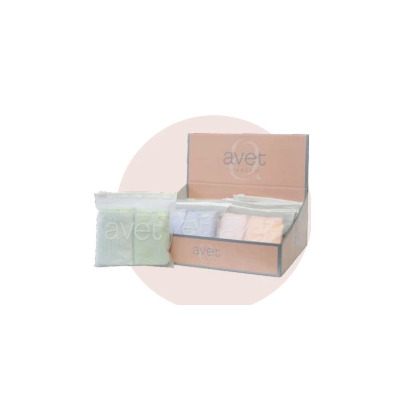 Minislips emboitants de chez Avet vendus par lot de 2 assortis en couleurs. Ce pack est conçu dans un COTON extra fin et confortable pour l'été 2025 . Le choix est proposé en 3 coloris : abricot, ciel et pistache