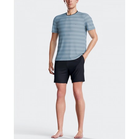Pyjama court composé d'un t-shirt à rayures, et d'un short uni à ceinture élastiquée et poches latérales. En coton et en fibre TENCEL(TM) Modal.Les fibres TENCEL(TM) Modal sont naturellement douces et lisses au toucher. TENCEL(TM) est une marque déposée de Lenzing AG.Fabriqué au Portugal.