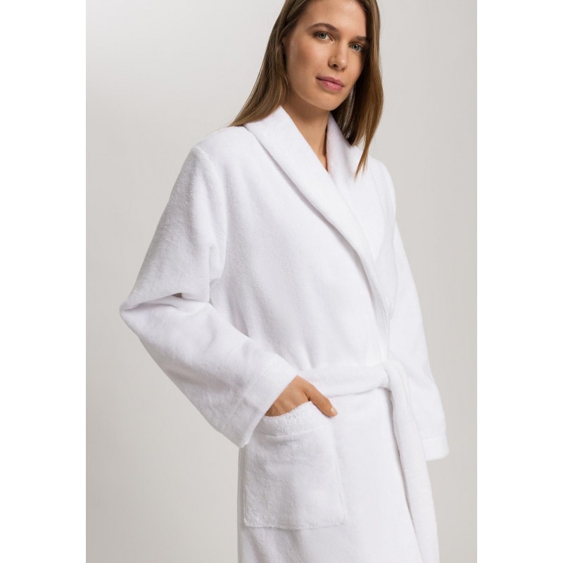 Col châle élégant, poches plaquées à l'avant avec motif brodé de HANRO et ceinture